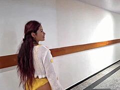 horny colombian aleja rides aaron's cock ending with mouthful cum in cowgirl quickie