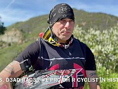 fit girl rides bicycle in tight yoga pants from behind