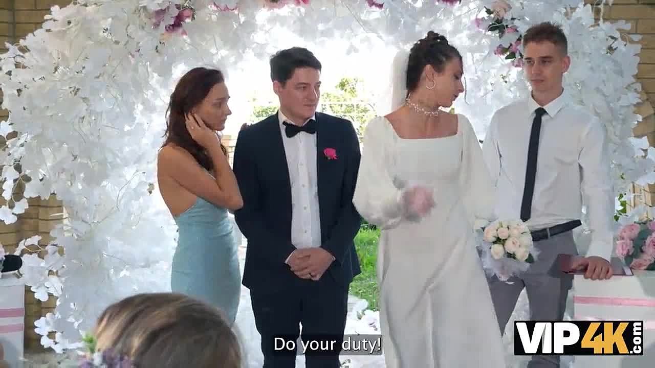 Hey, check this out – the bride gets fucked hard in stockings at her wedding! 😈 Guests watch as she takes anal creampie outdoors.