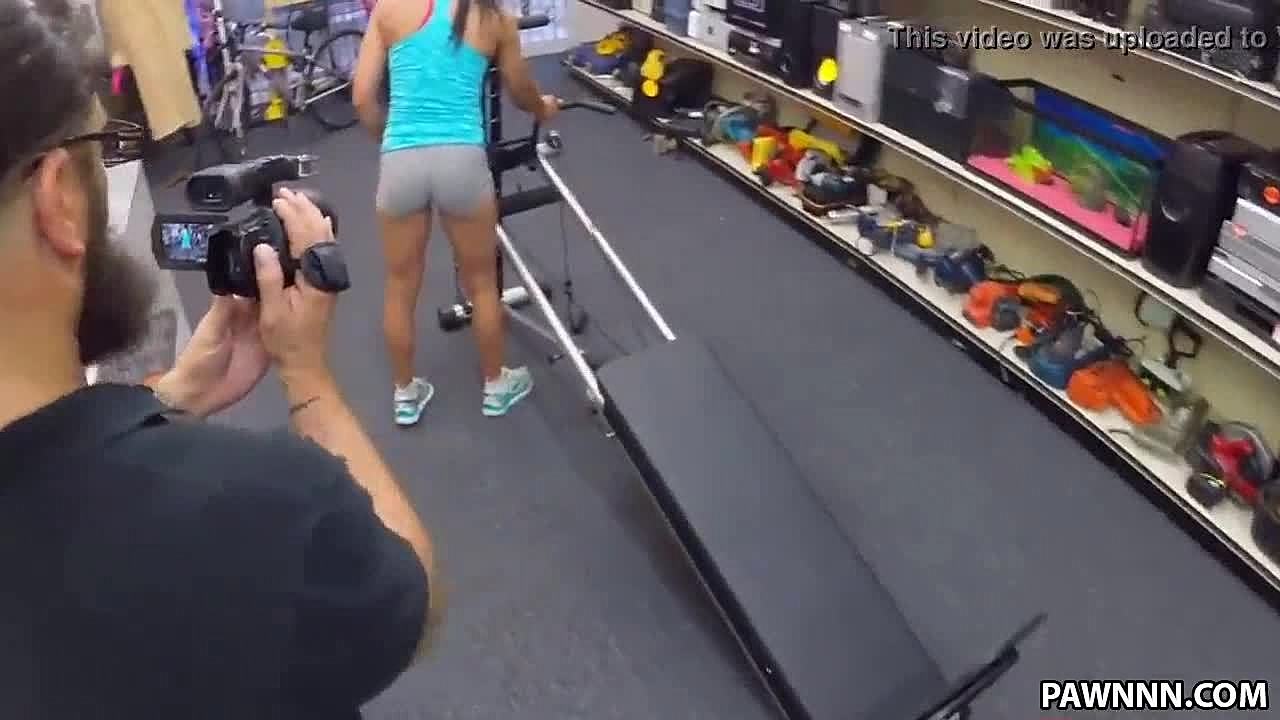 Muscular babe sucks big cock and fucks hard for cash in pawn shop