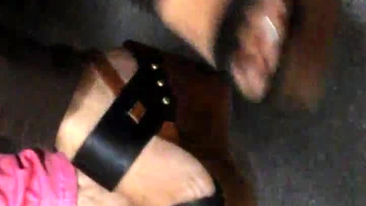 Mature feet hidden in candid wedge sandals tease secretly