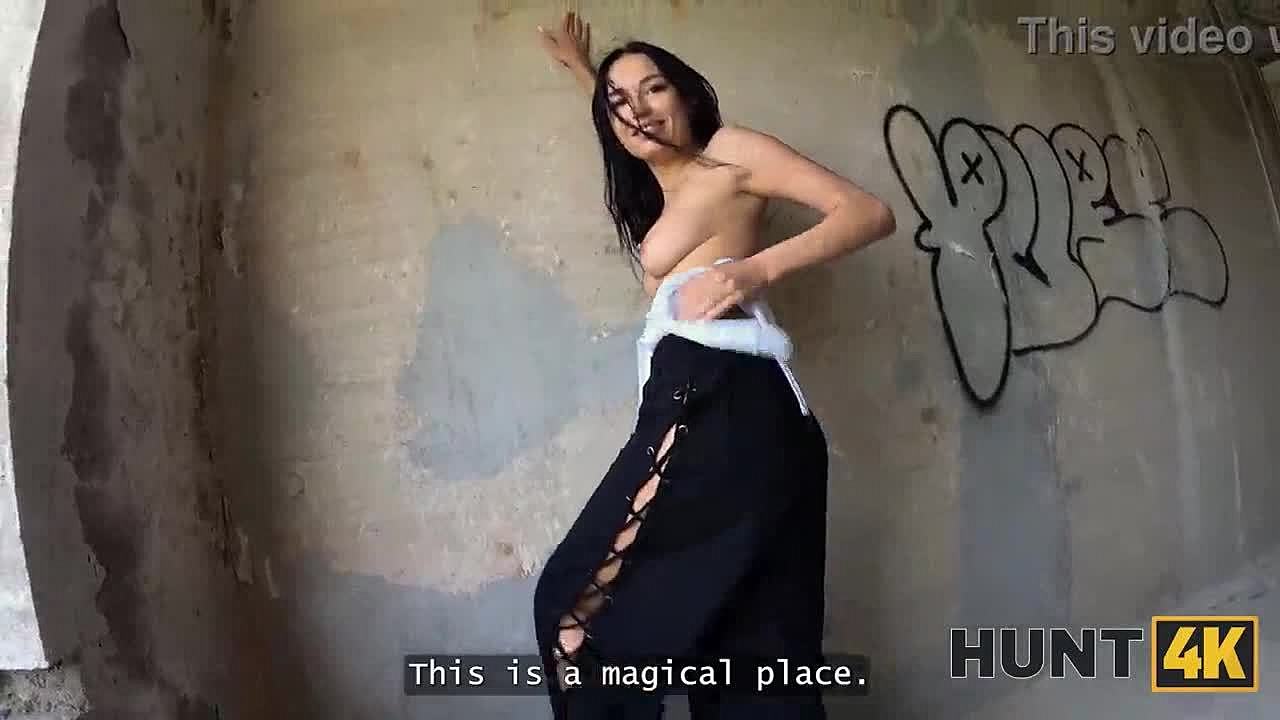 Stripped brunette trades clothes for cash in abandoned spot
