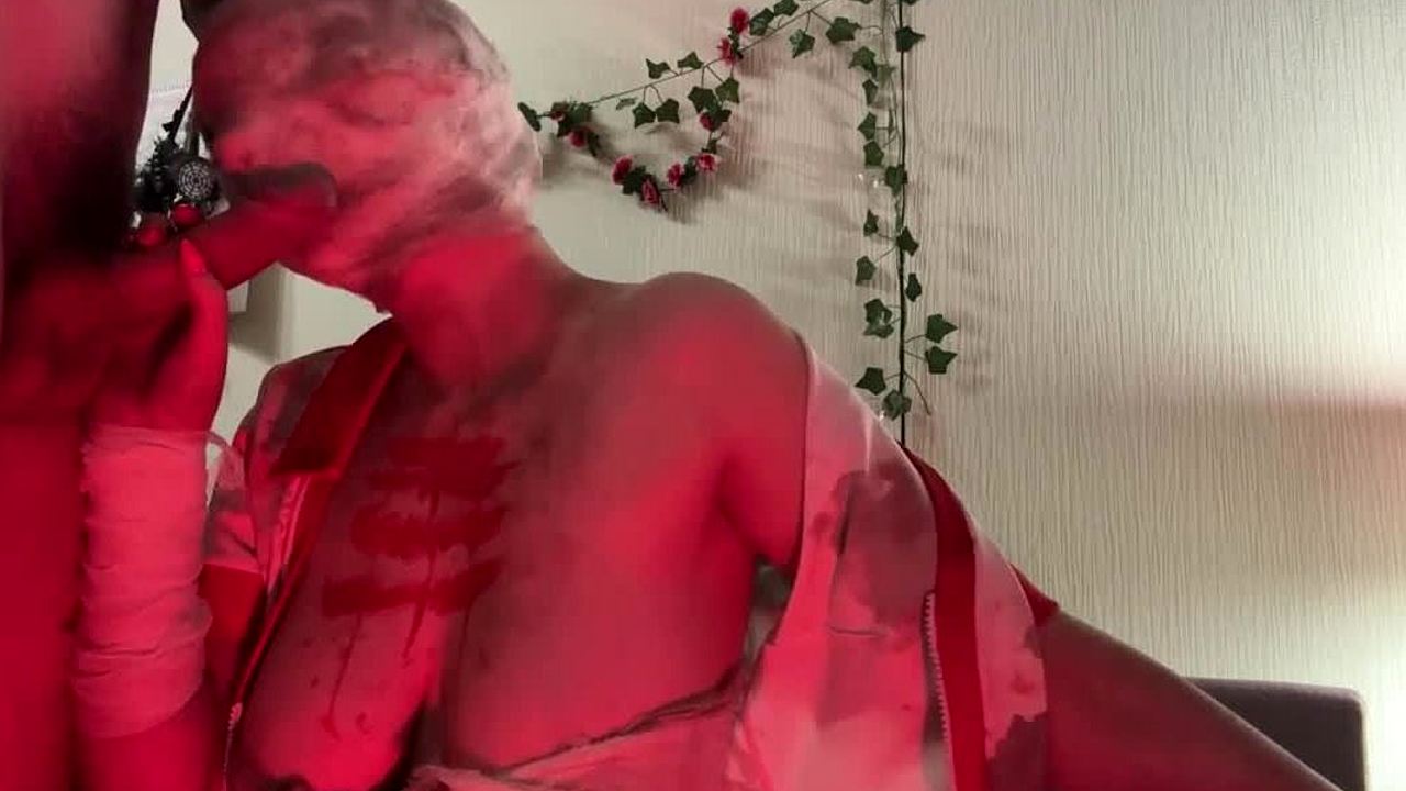 A Silent Hill nurse in lingerie hits my place for Halloween patient roleplay fuck.